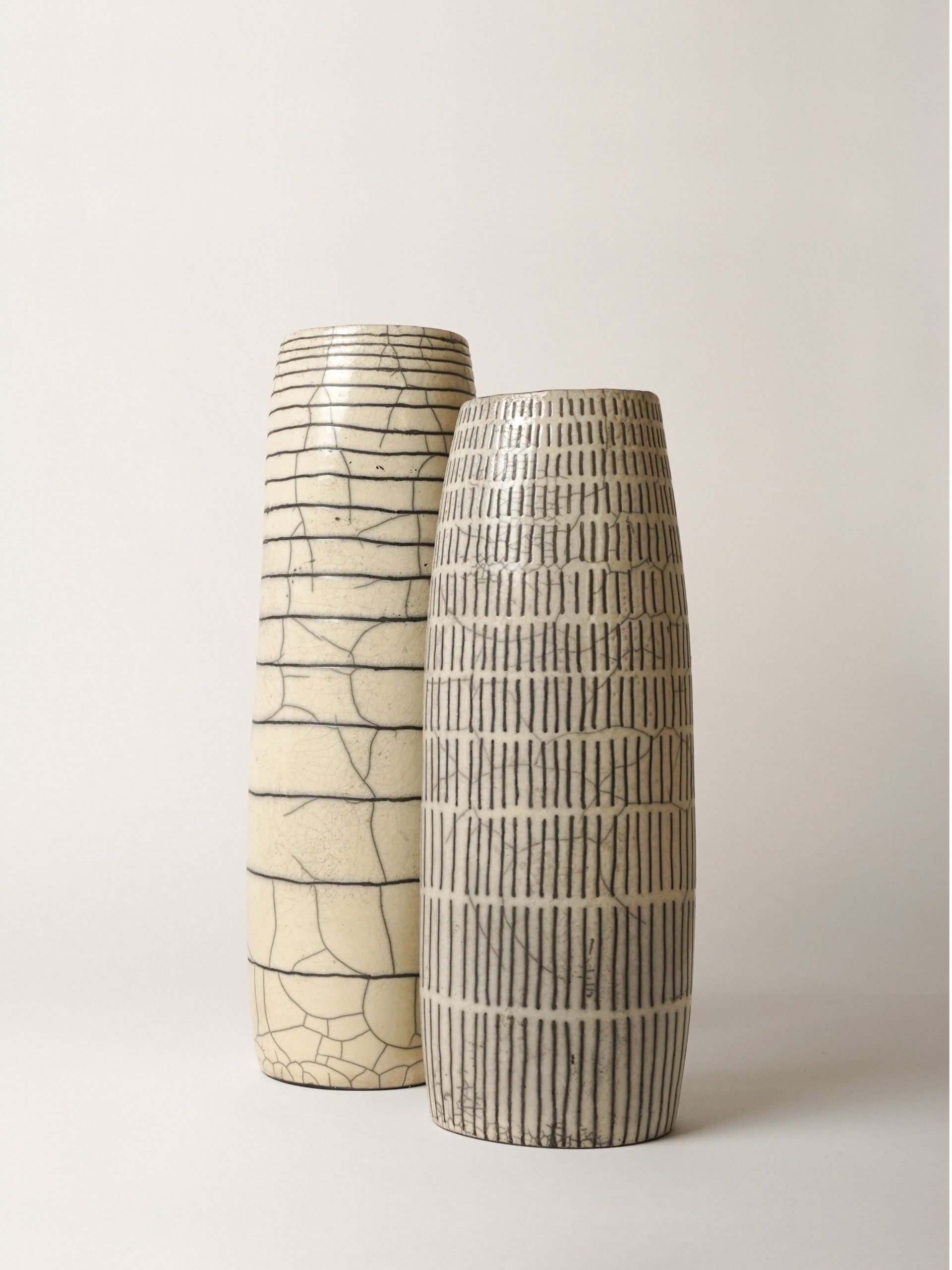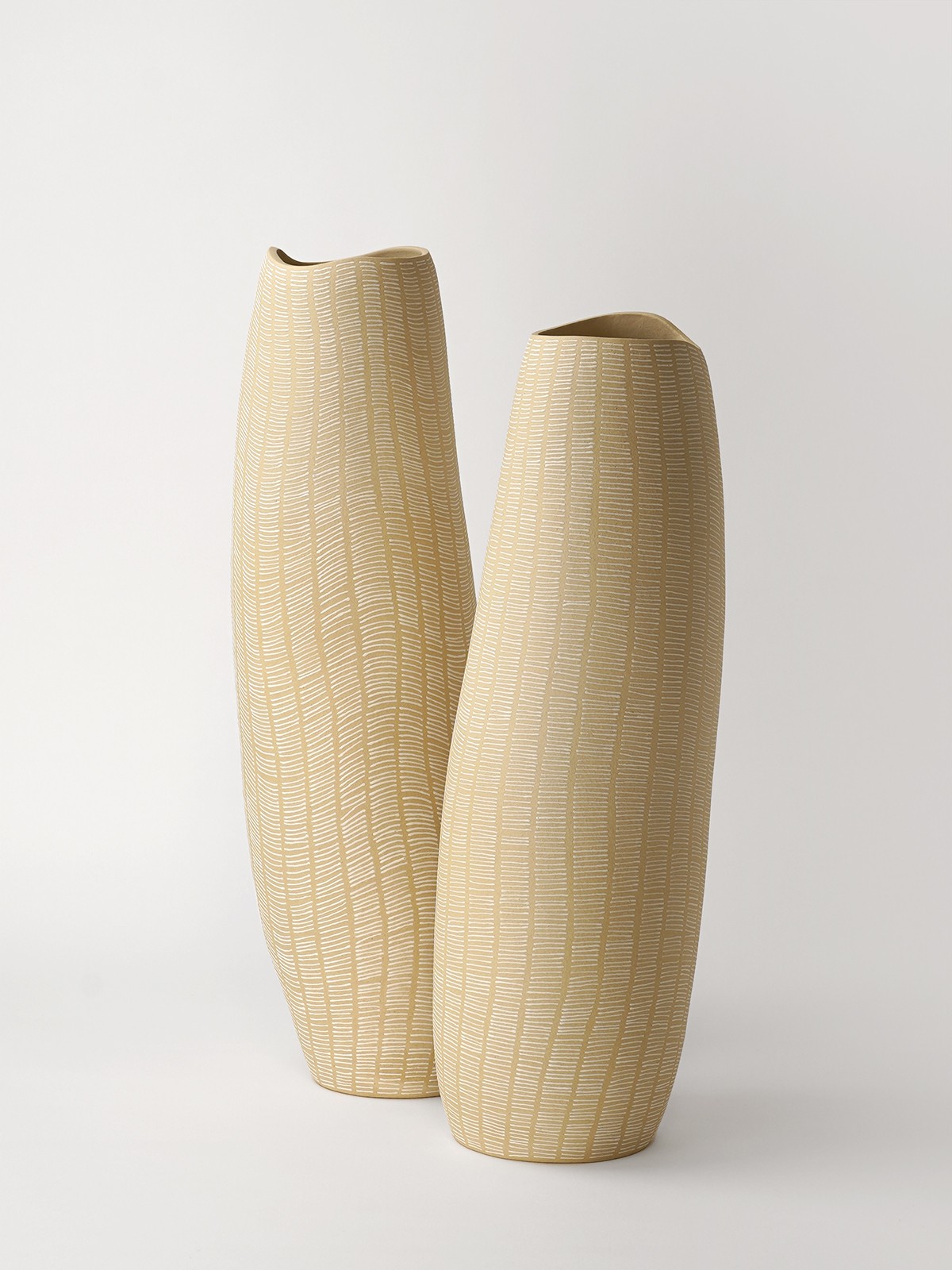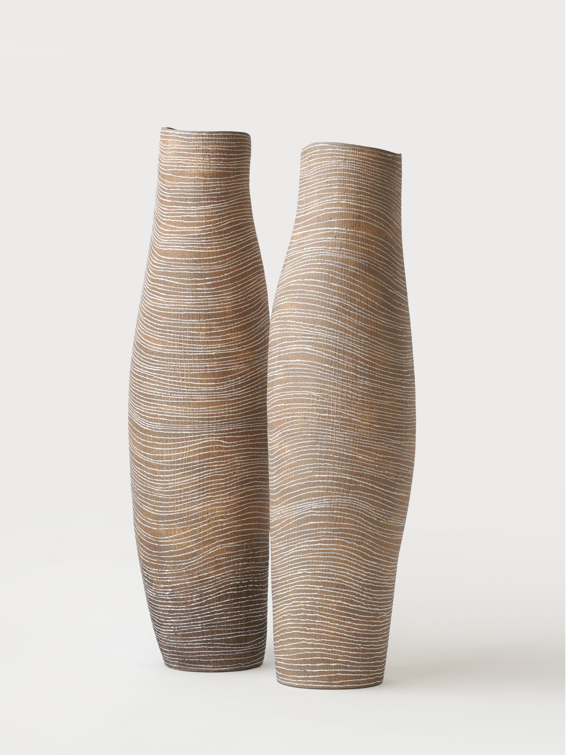 Aufbautechnik, geschnitzt, engobiert, unglasiert